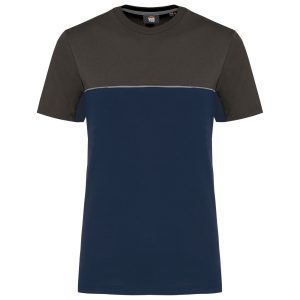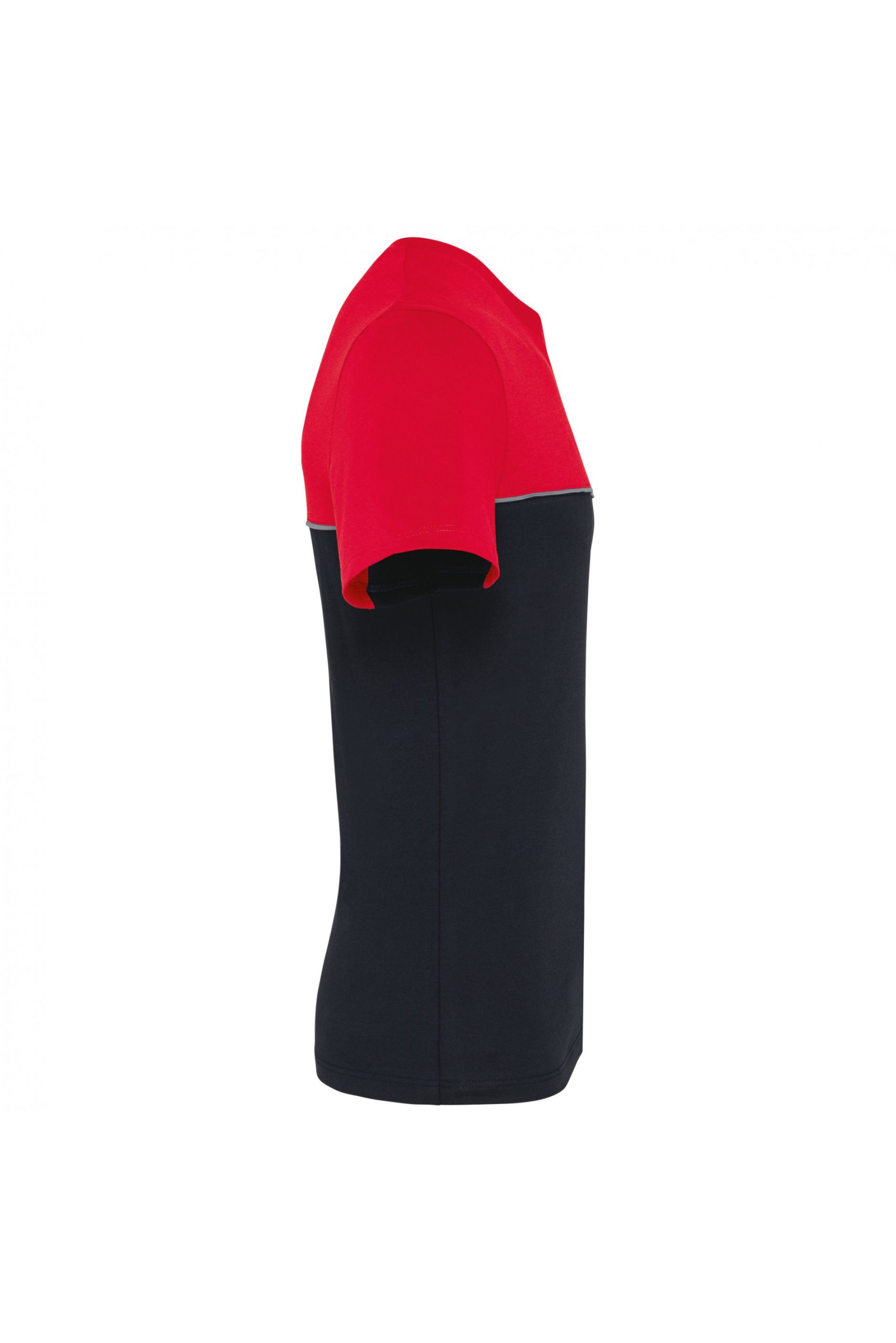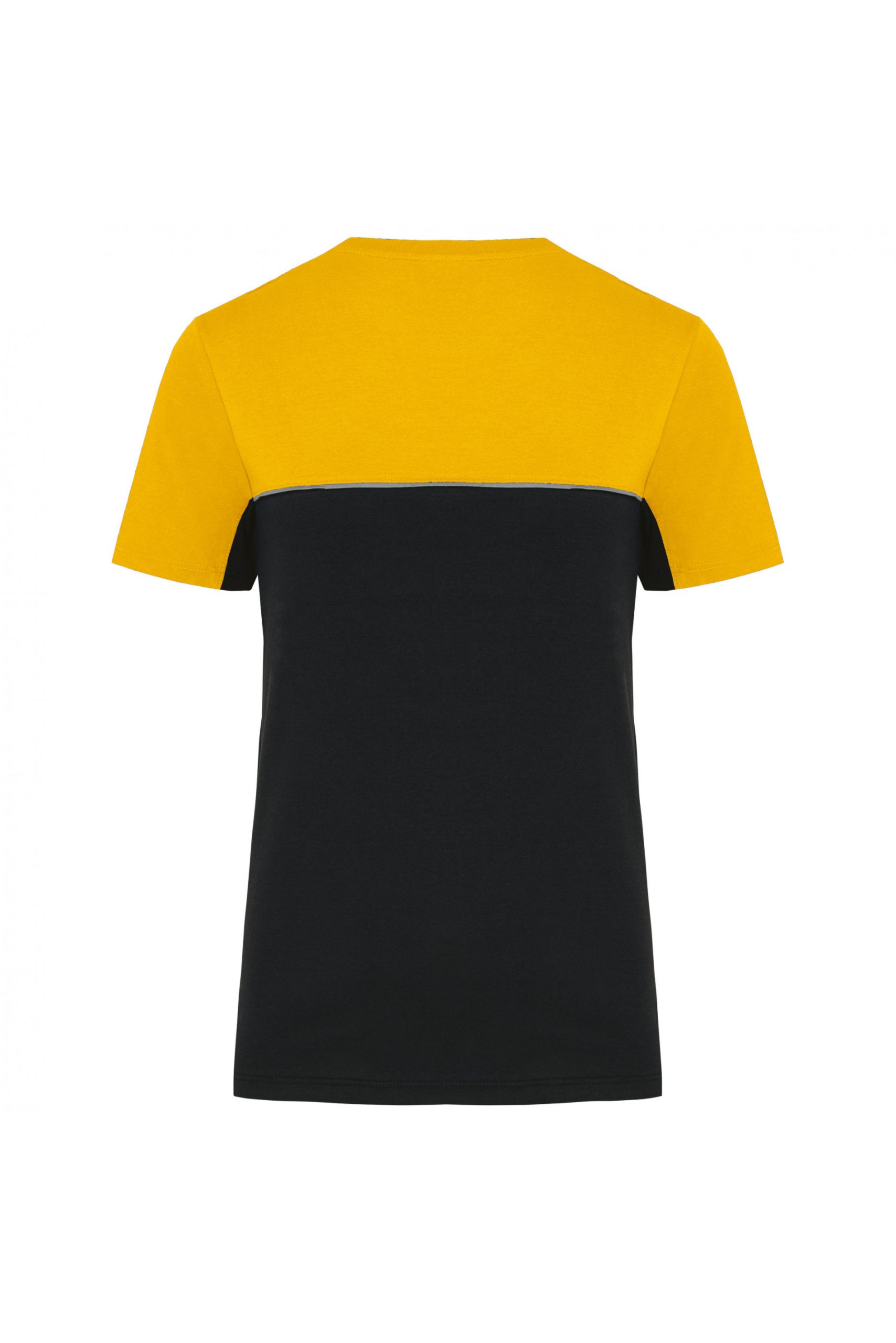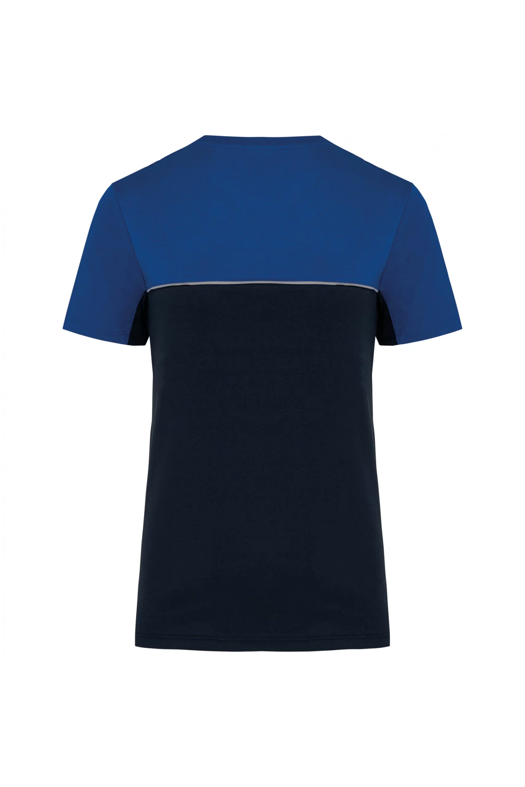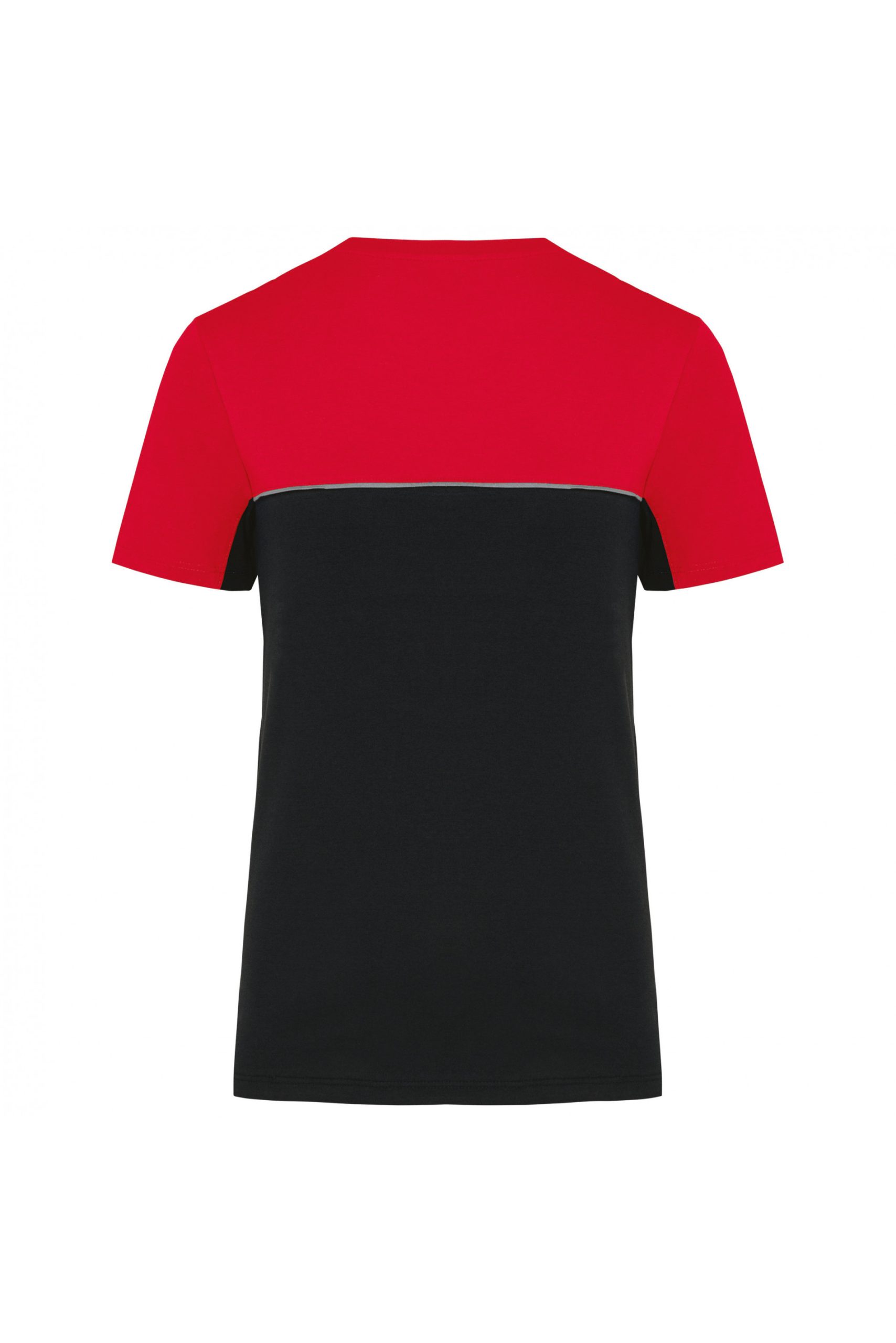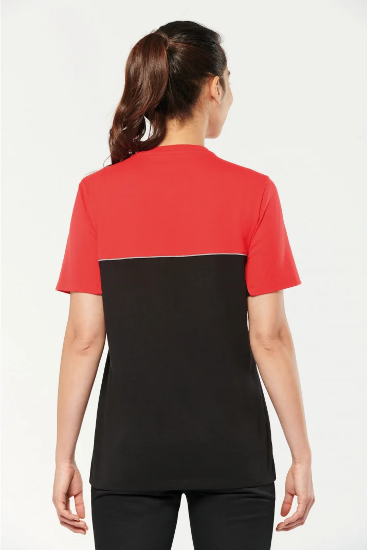 - Passepoil contrasté entre les parties bicolores du vêtement (corps, devant et dos).